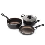 La Línea Aliada es la línea infaltable en tu cocina. Representa la mejor opción para consumidores tradicionales que buscan implementos funcionales, duraderos y con excelente rendimiento, ideales para cocinas prácticas y esenciales. Equipada con 4 capas de antiadherente de alta calidad y una resistencia de hasta 5.000 ciclos de abrasión, la Línea Aliada te ofrece una cocción uniforme y segura. Su superficie evita que los alimentos se peguen, facilitando la limpieza y permitiéndote cocinar con menos aceite, manteniendo siempre el sabor de tus recetas; esta batería trae: Sartén 18 cm, Olla 18 cm, Perol 18 cm, tapa de Vidrio 18